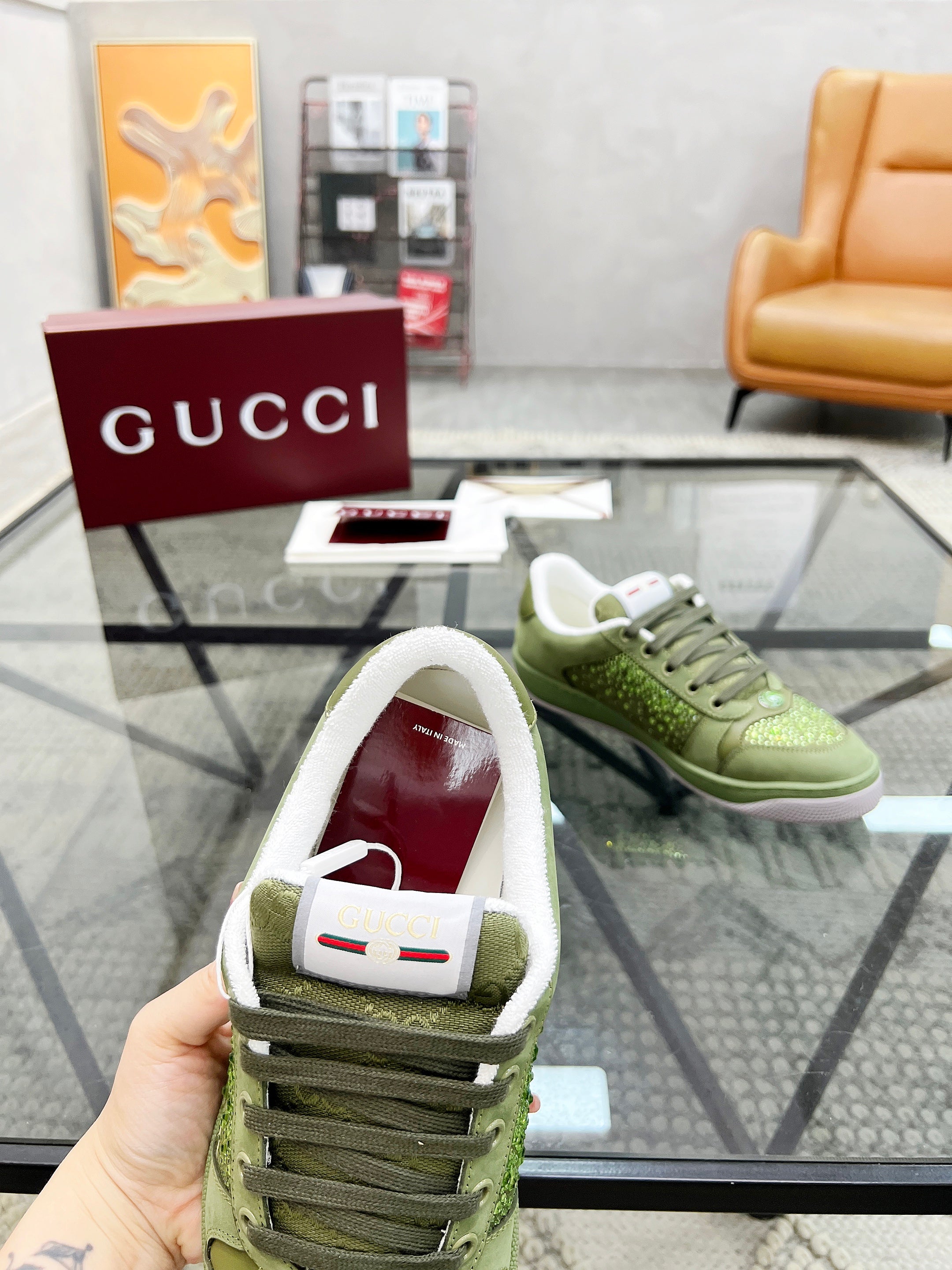 GG Men's Screener Sneaker Green Diamond Cowhide 559029
