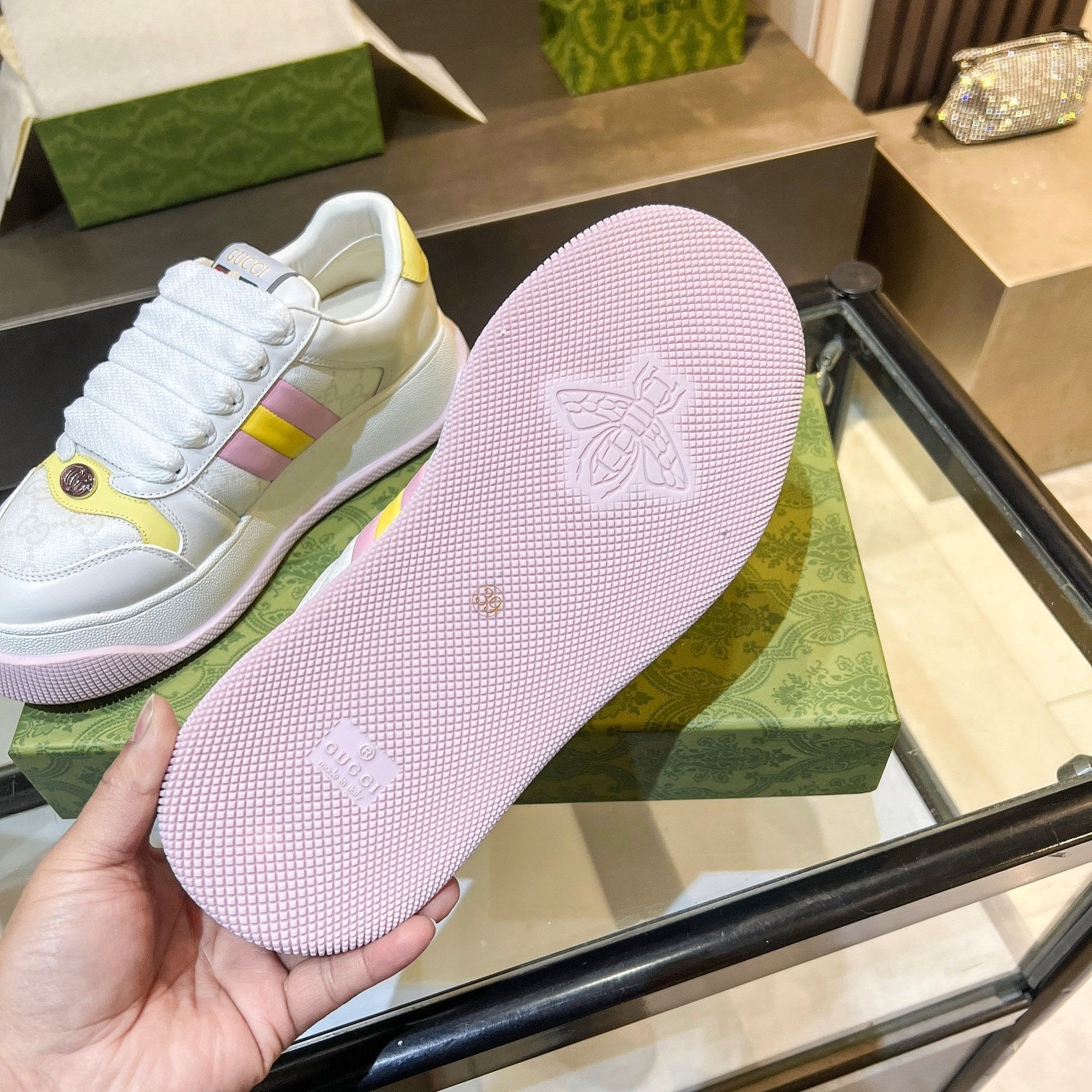 GG Men's Screener Sneaker White Canvas Sheepskin 523605