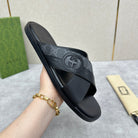 GG Men's Slide Black Canvas Cowhide 542949
