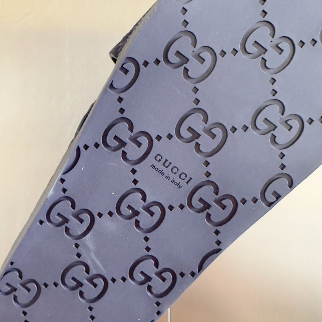 GG Men's Slide Navy Blue Embossed Suede 595712