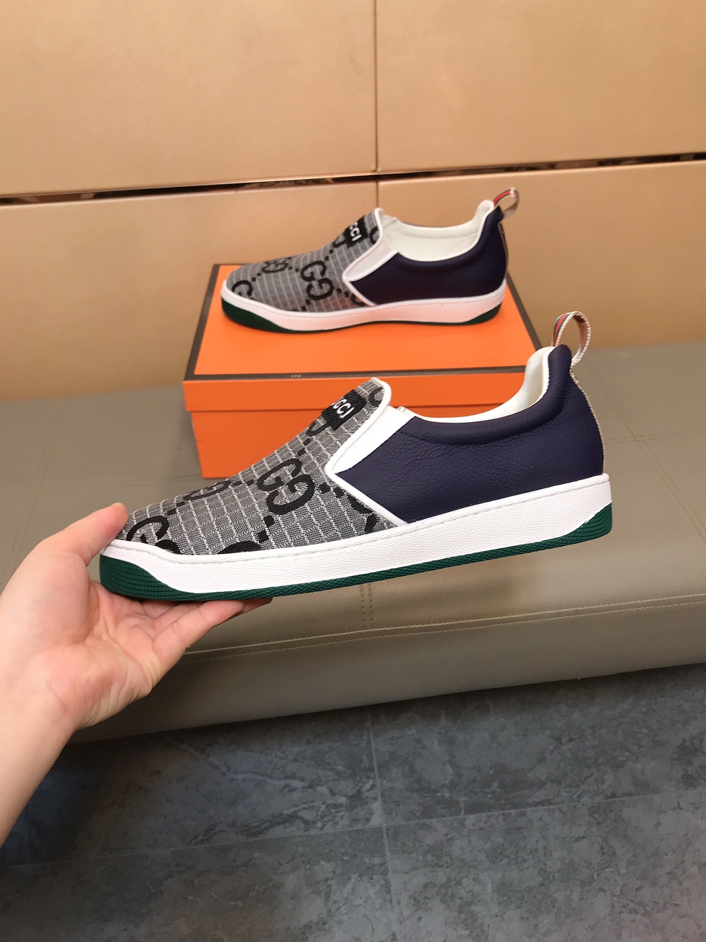GG Men's Slip On Grey Cowhide Printed Fabric 525191