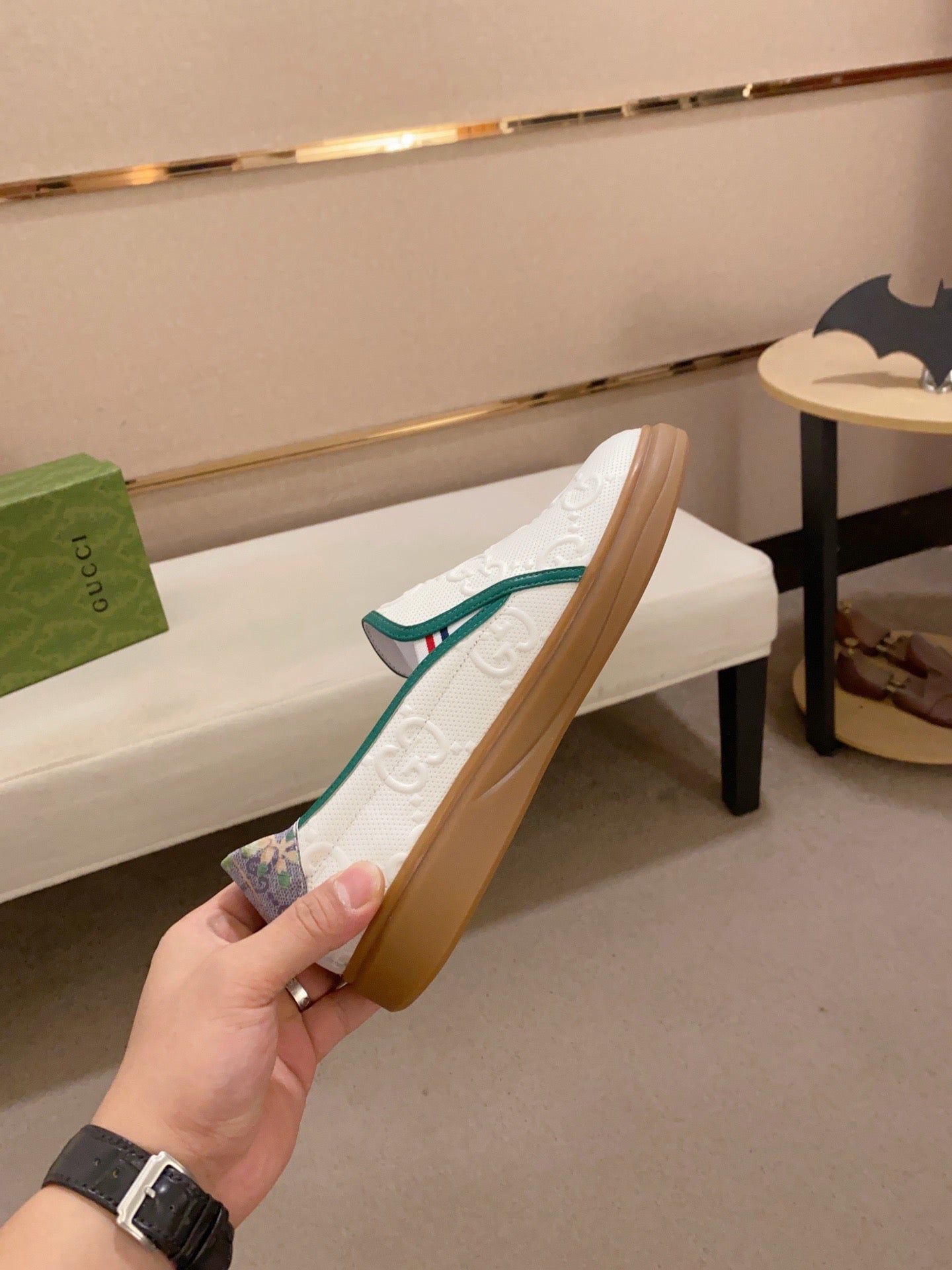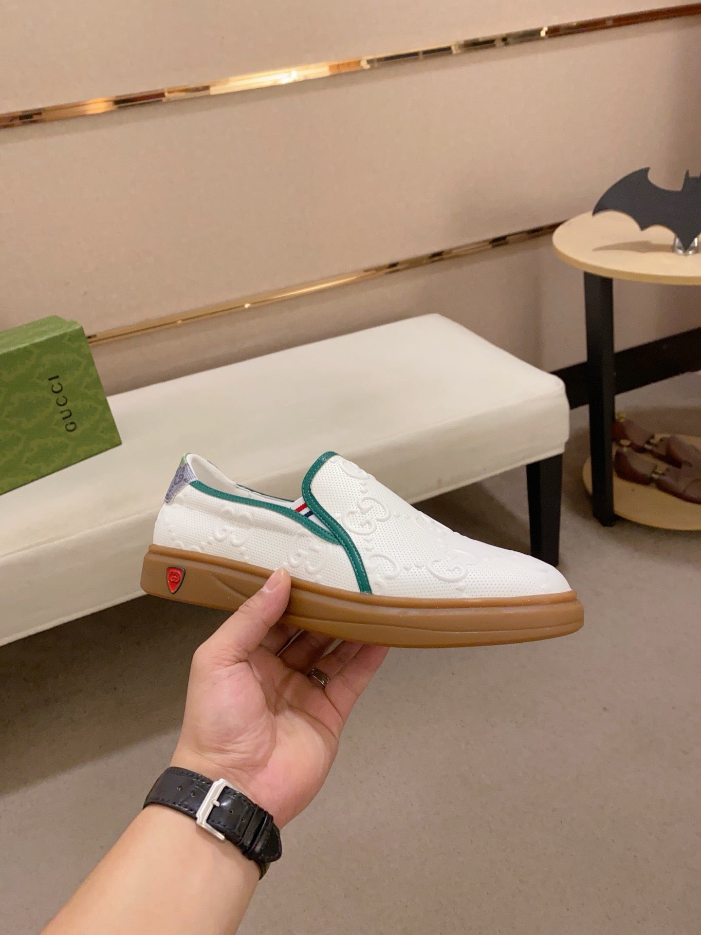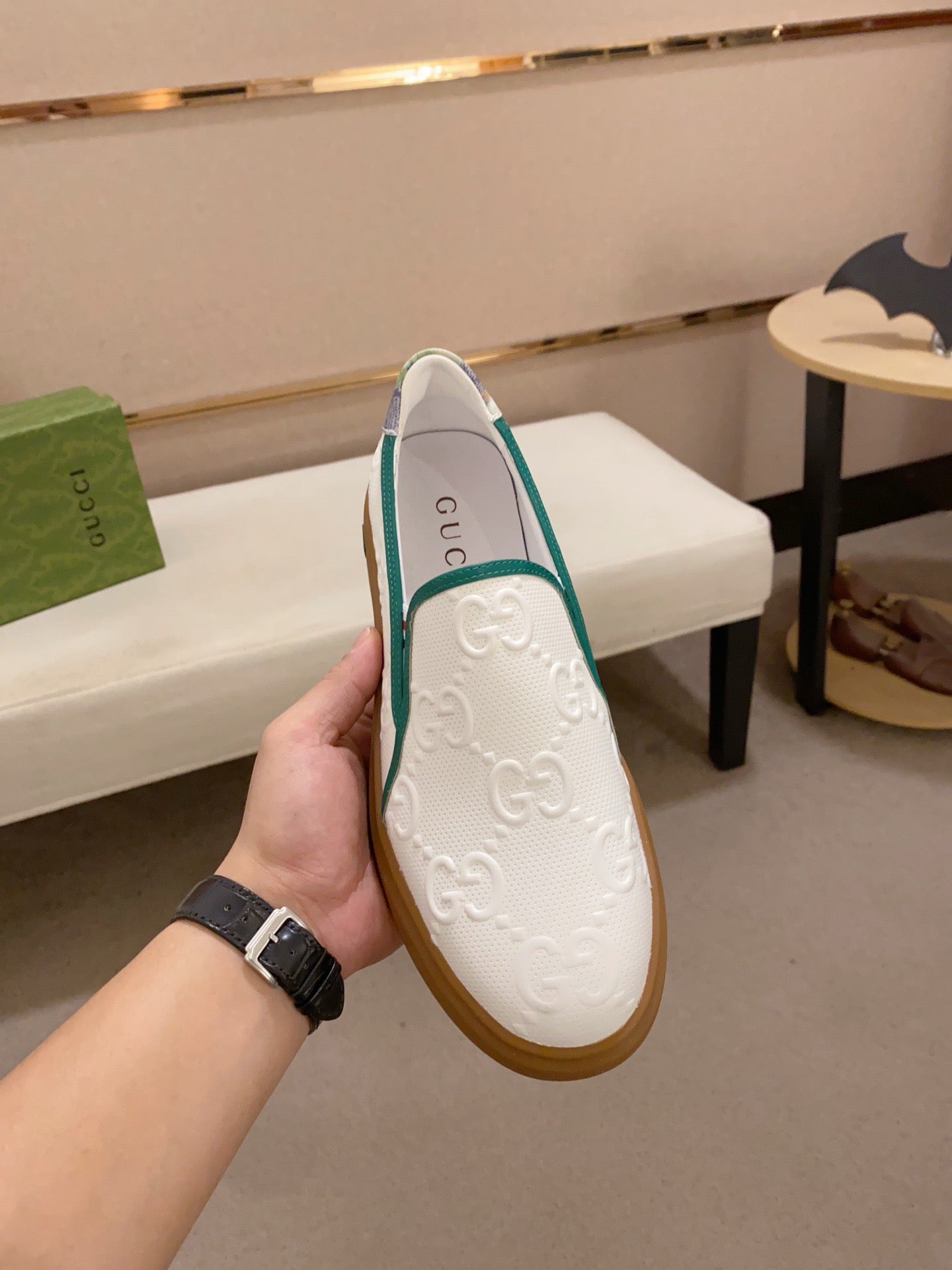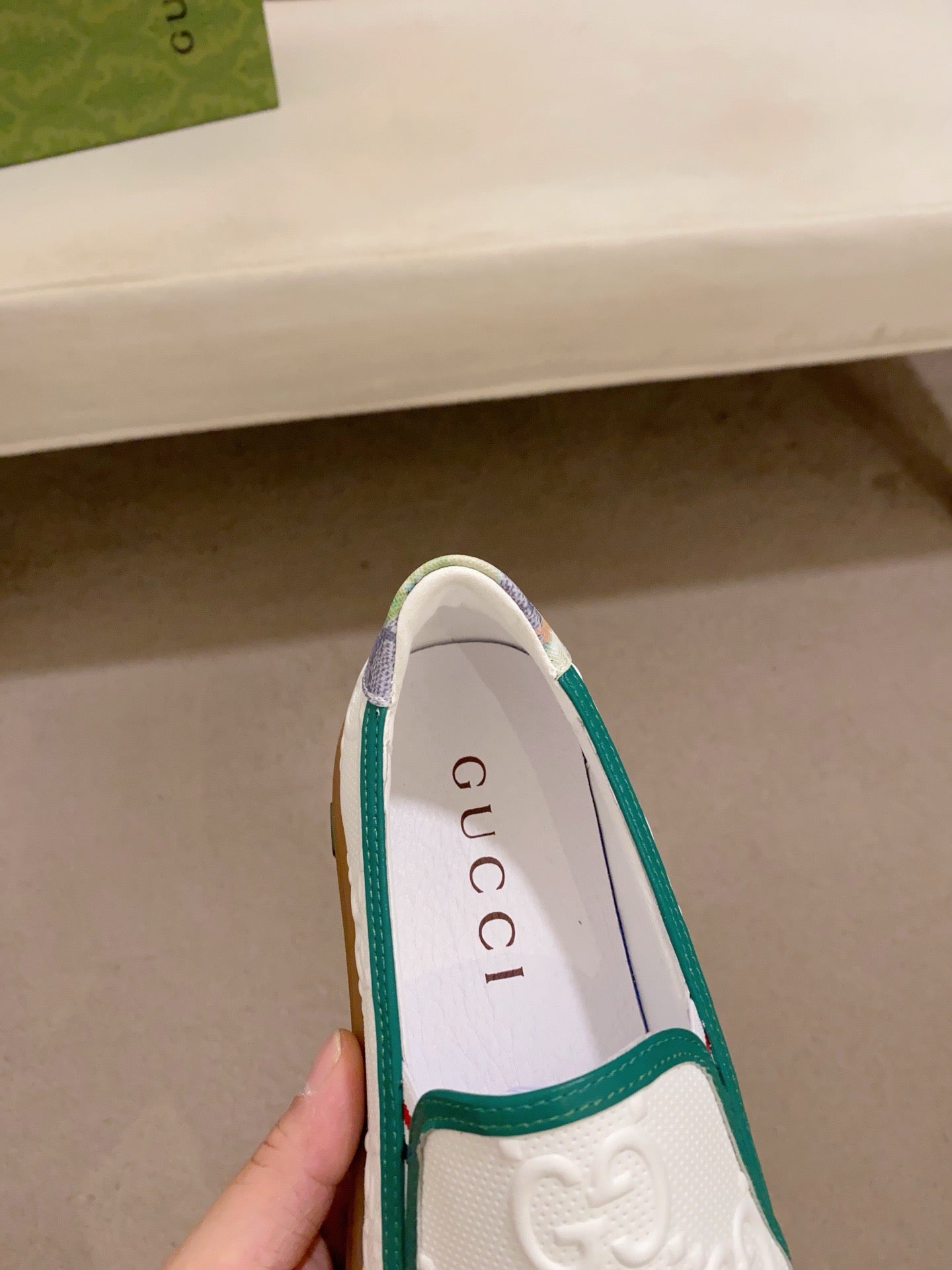 GG Men's Slip on Loafer White Embossed Cowhide 533952