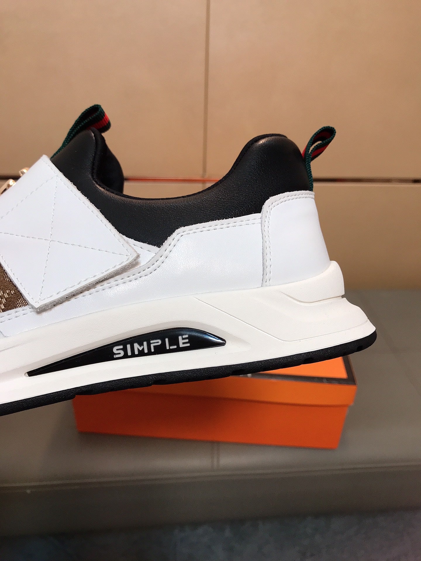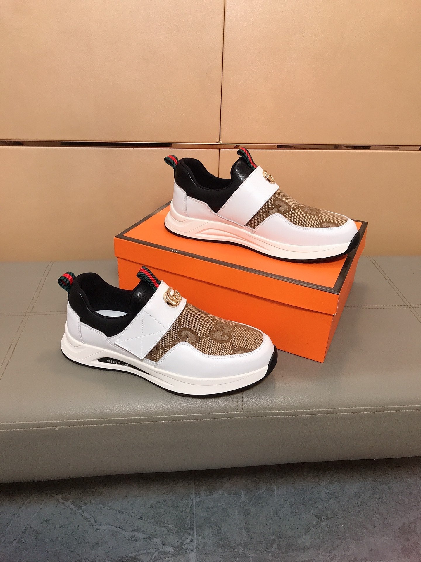 GG Men's Slip on White Brown Cowhide Canvas 530404