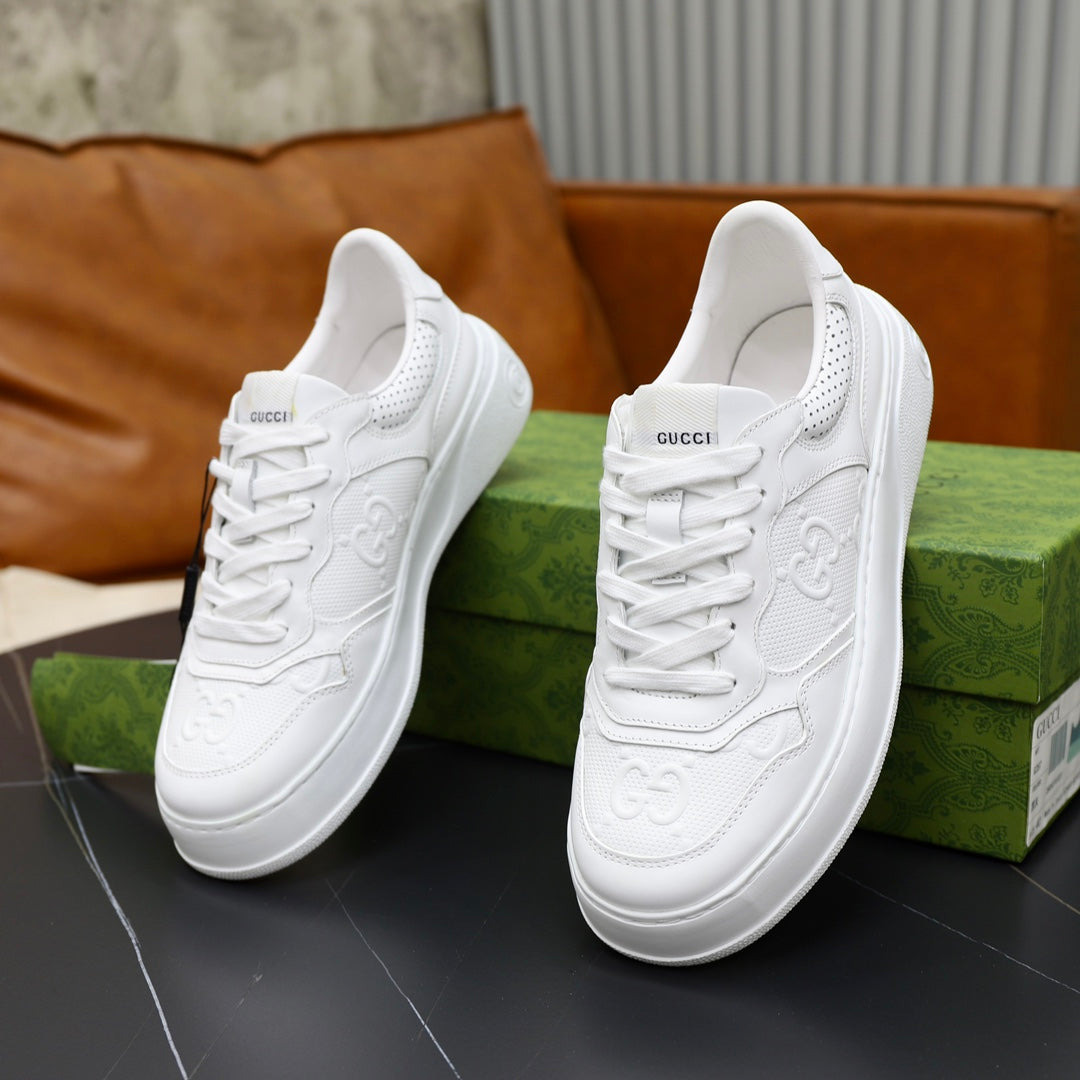 GG Men's Sneaker White Cowhide Embossed 523165