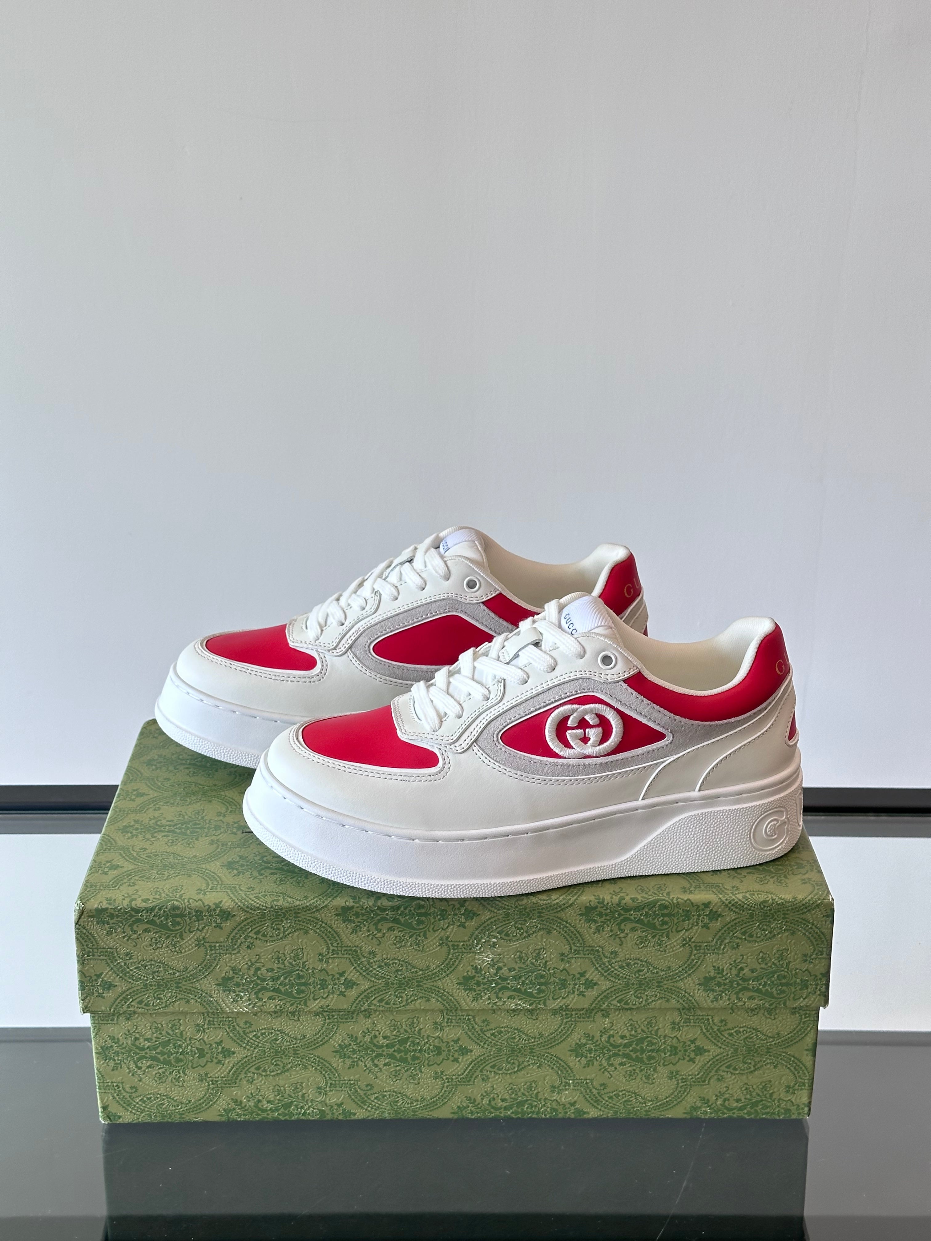 GG Men's Sneaker White Pink Cowhide 535205