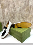 GG Men's Tassel Loafer White Black Patent Leather 548747