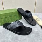 GG Men's Thong Sandals Black Canvas Cowhide 542951