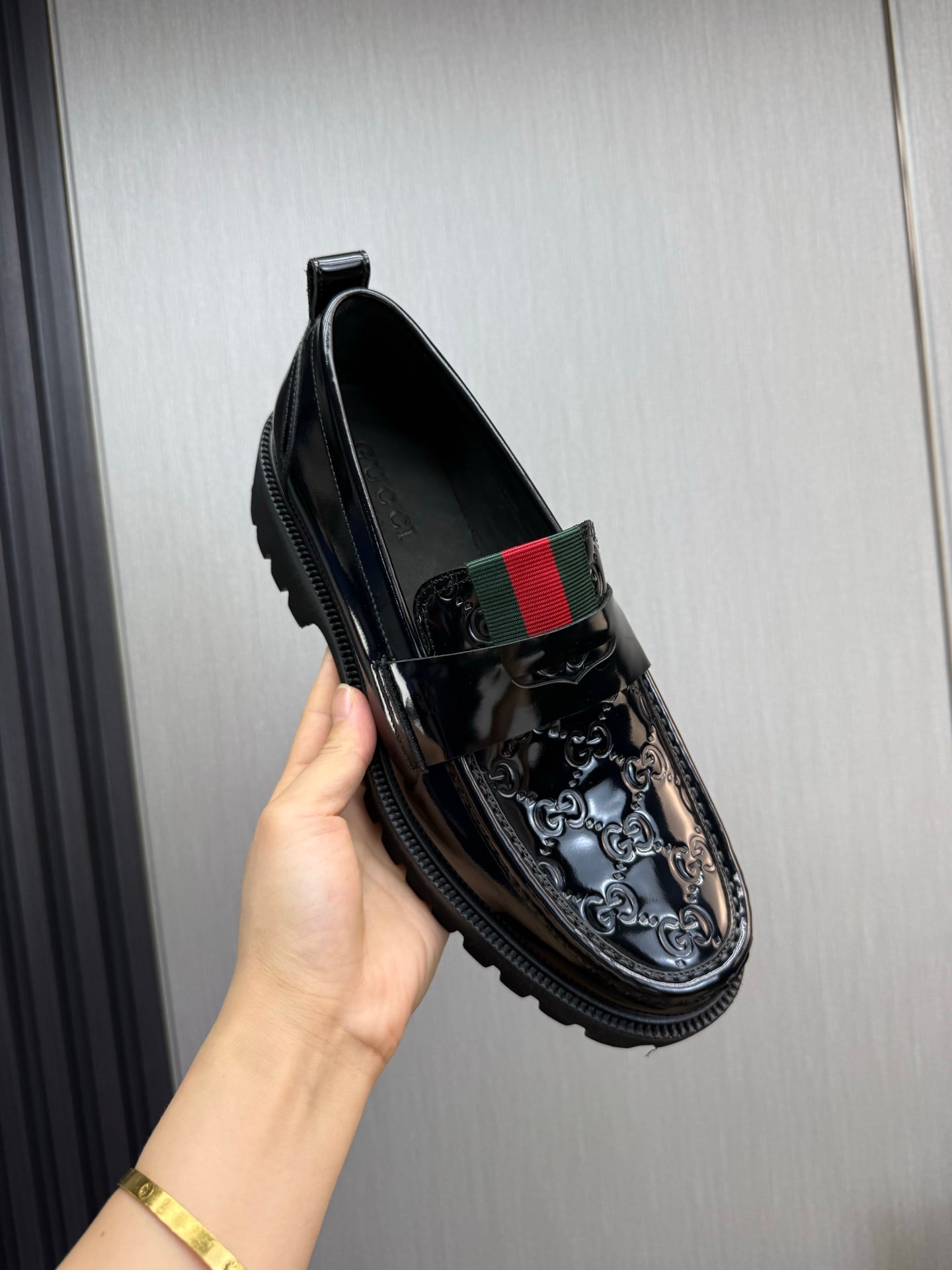 GG Men's Web Loafer Black Patent Leather 724592