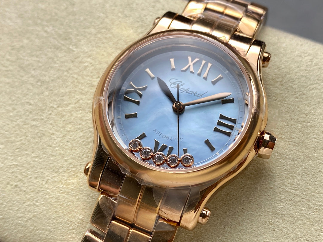 Happy Diamond 30mm Gold Blue Dial