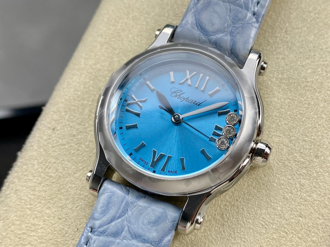 Happy Diamonds 30mm Silver Blue Dial