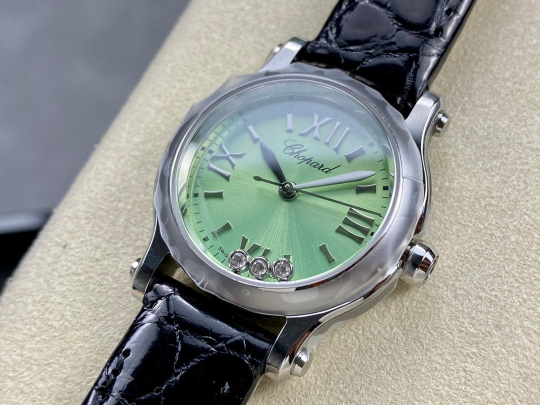 Happy Diamonds 30mm Silver Green Dial
