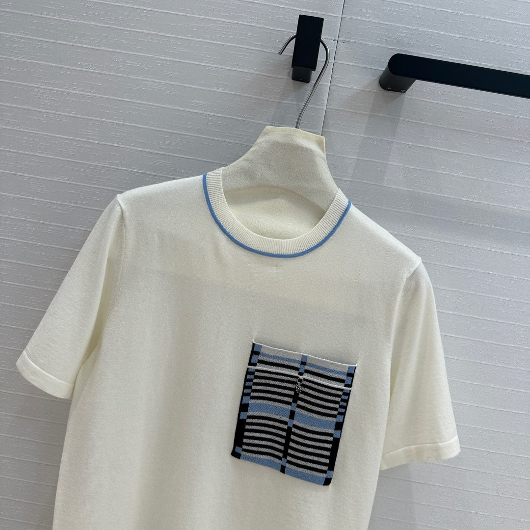 Hm 25 Short-sleeved Sweater White Blue Wool