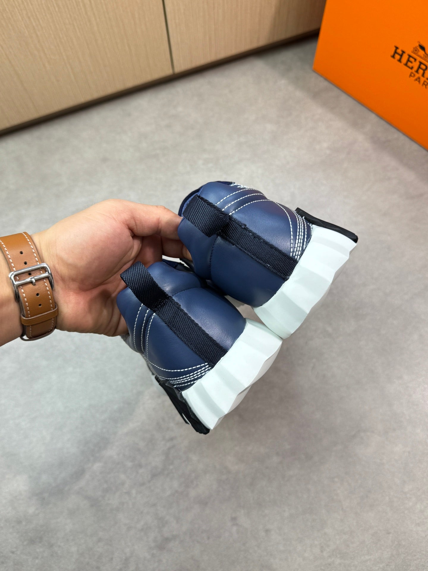 HM Men's Bouncing Sneaker Navy Blue Calfskin Suede 696024