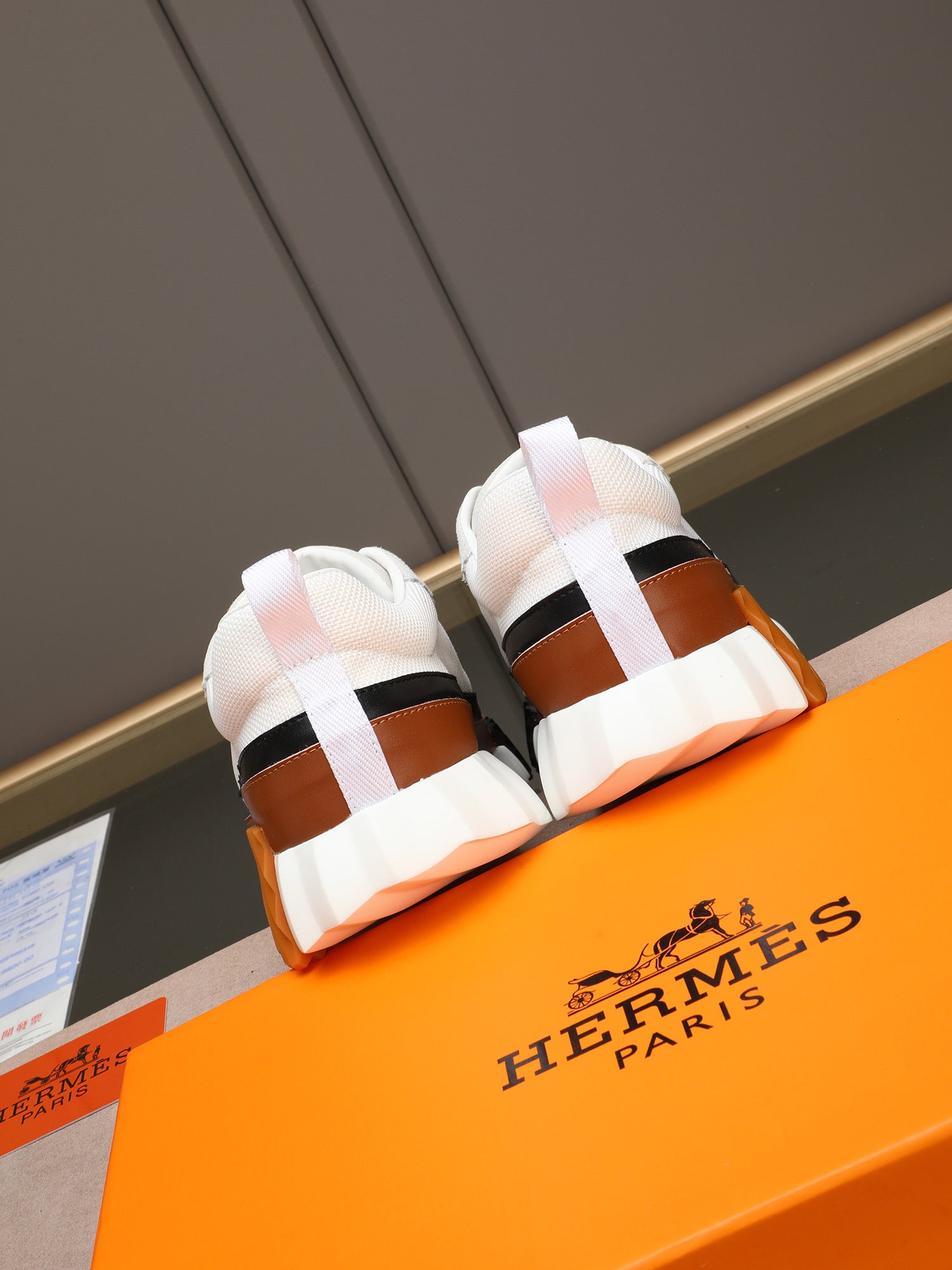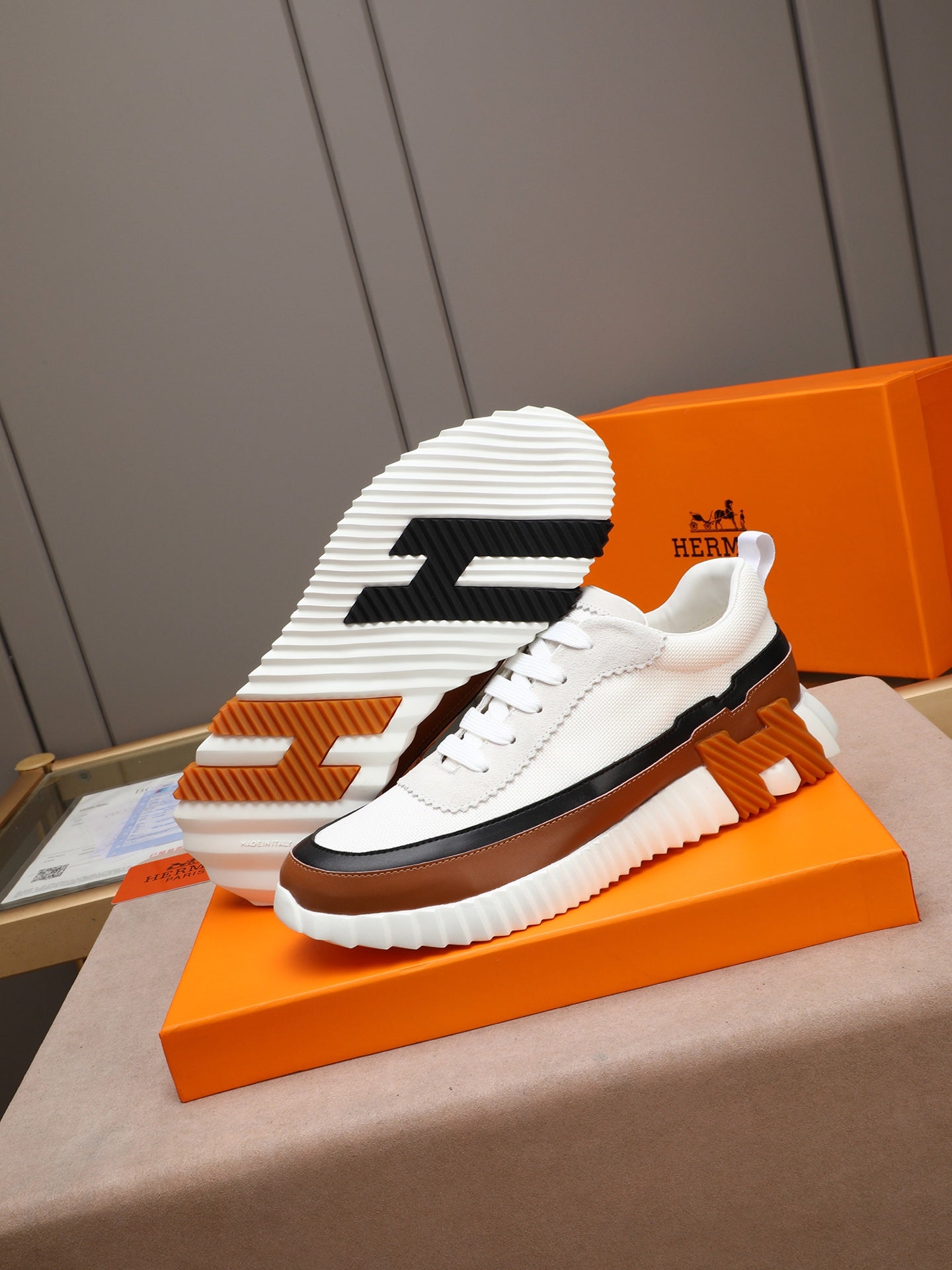 HM Men's Bouncing Sneaker White Brown Calfskin Fabric 754130