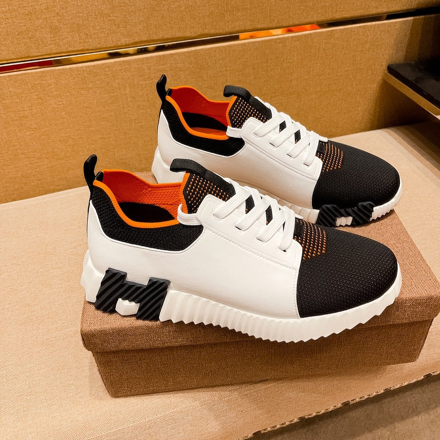 HM Men's Depart Slip-on Sneaker White Black Knit Cowhide 541299