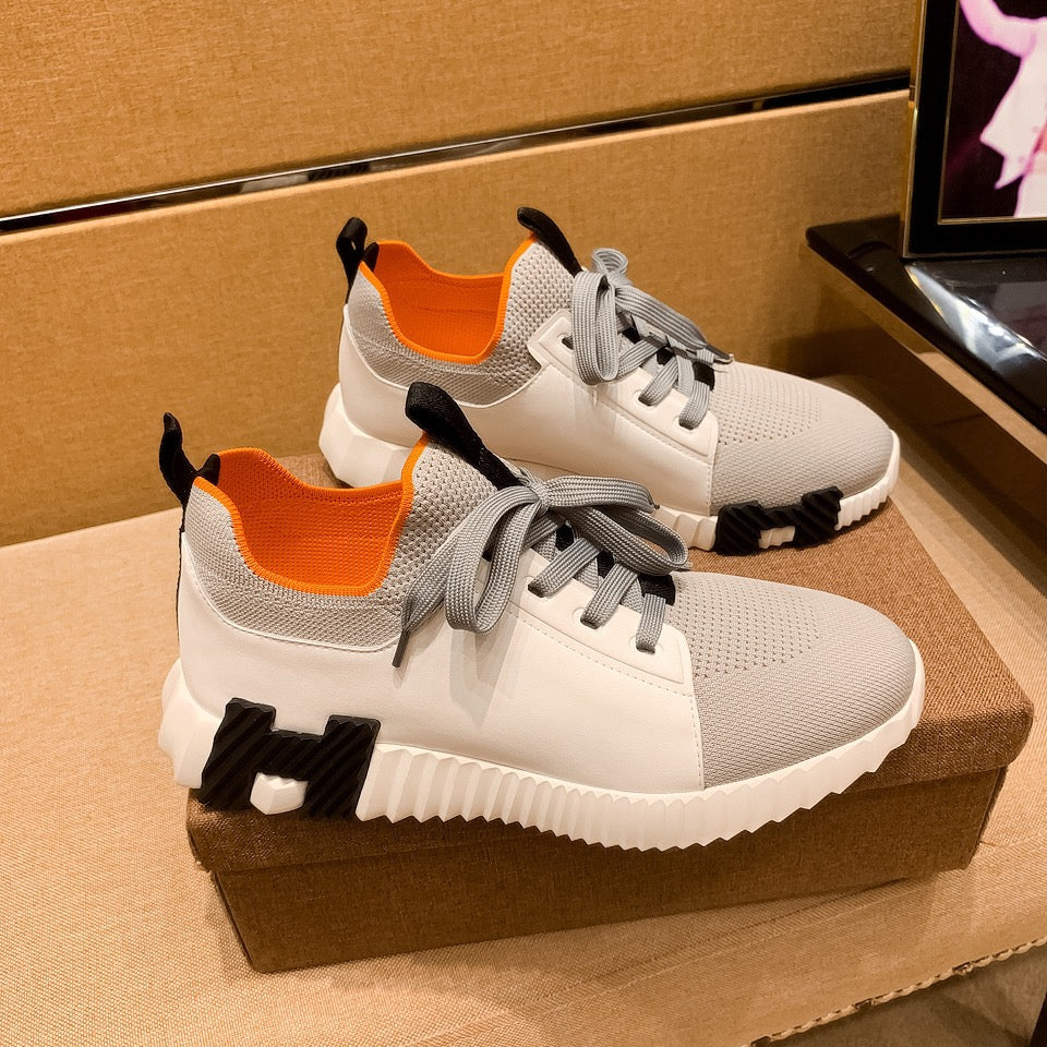 HM Men's Depart Slip-on Sneaker White Grey Knit Cowhide 263685