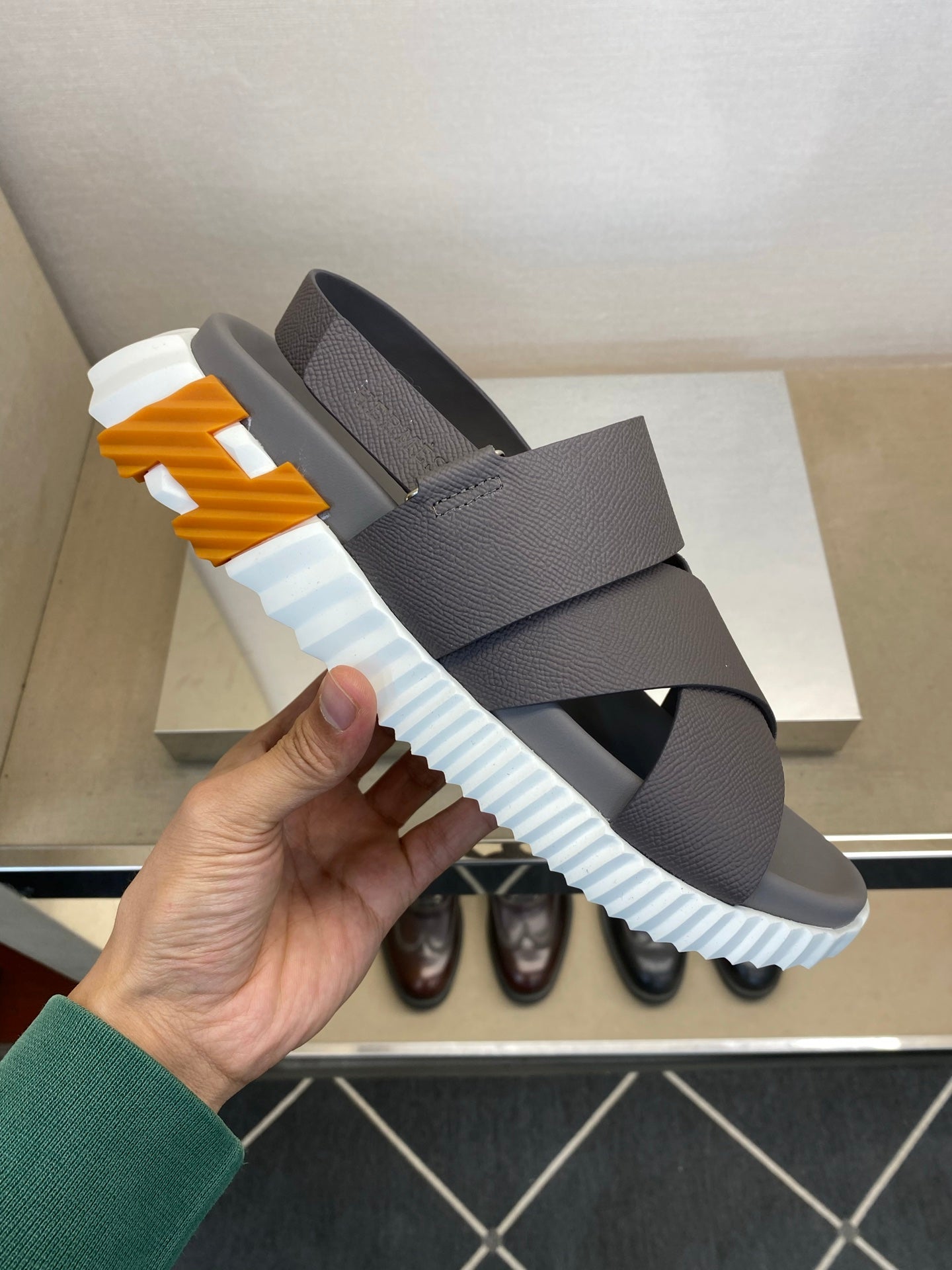 HM Men's Electric Sandals Dark Grey Calfskin 602600