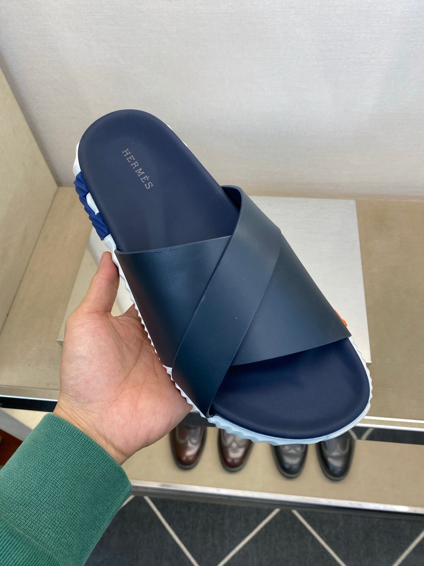 HM Men's Infra Slide Navy Blue Calfskin 602611