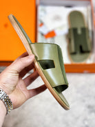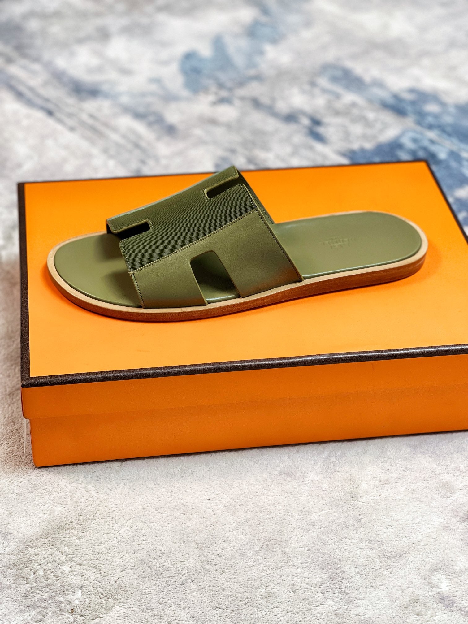 HM Men's Izmir Slide Olive Green Cowhide 231028