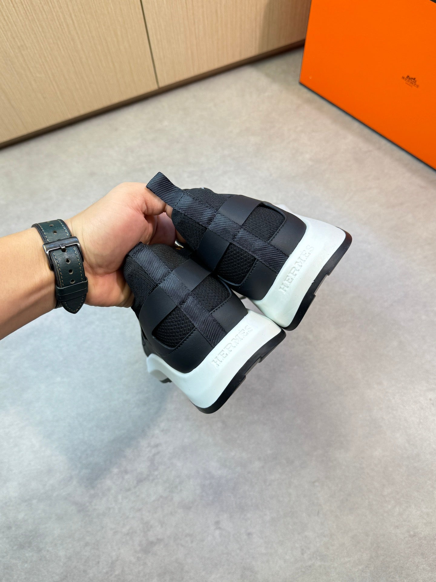 HM Men's Katana Sneaker Black Calfskin 606123