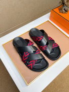 HM Men's Kazimir Sandals Black Red Calfskin 735741