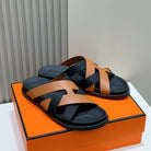 HM Men's Kazimir Slide Brown Back Calfskin 562769