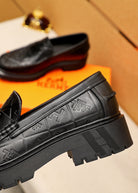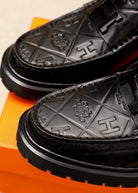 HM Men's Moccasins Loafer Black Calfskin Embossed 710912