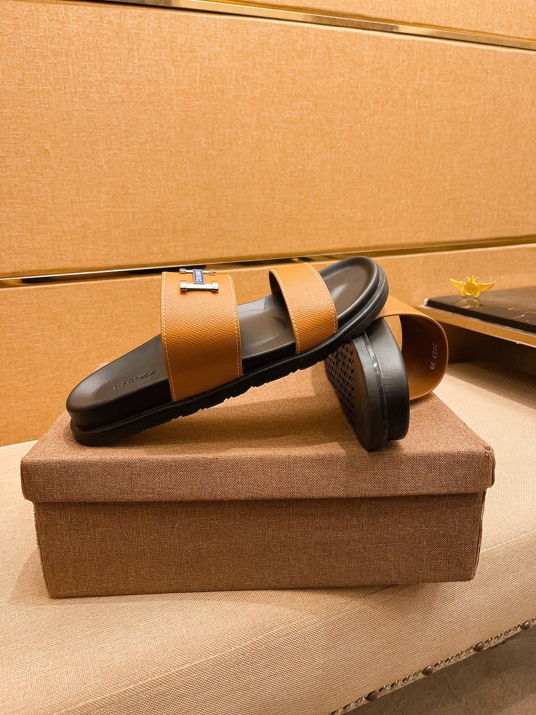 HM Men's Slide Orange Cowhide 602329