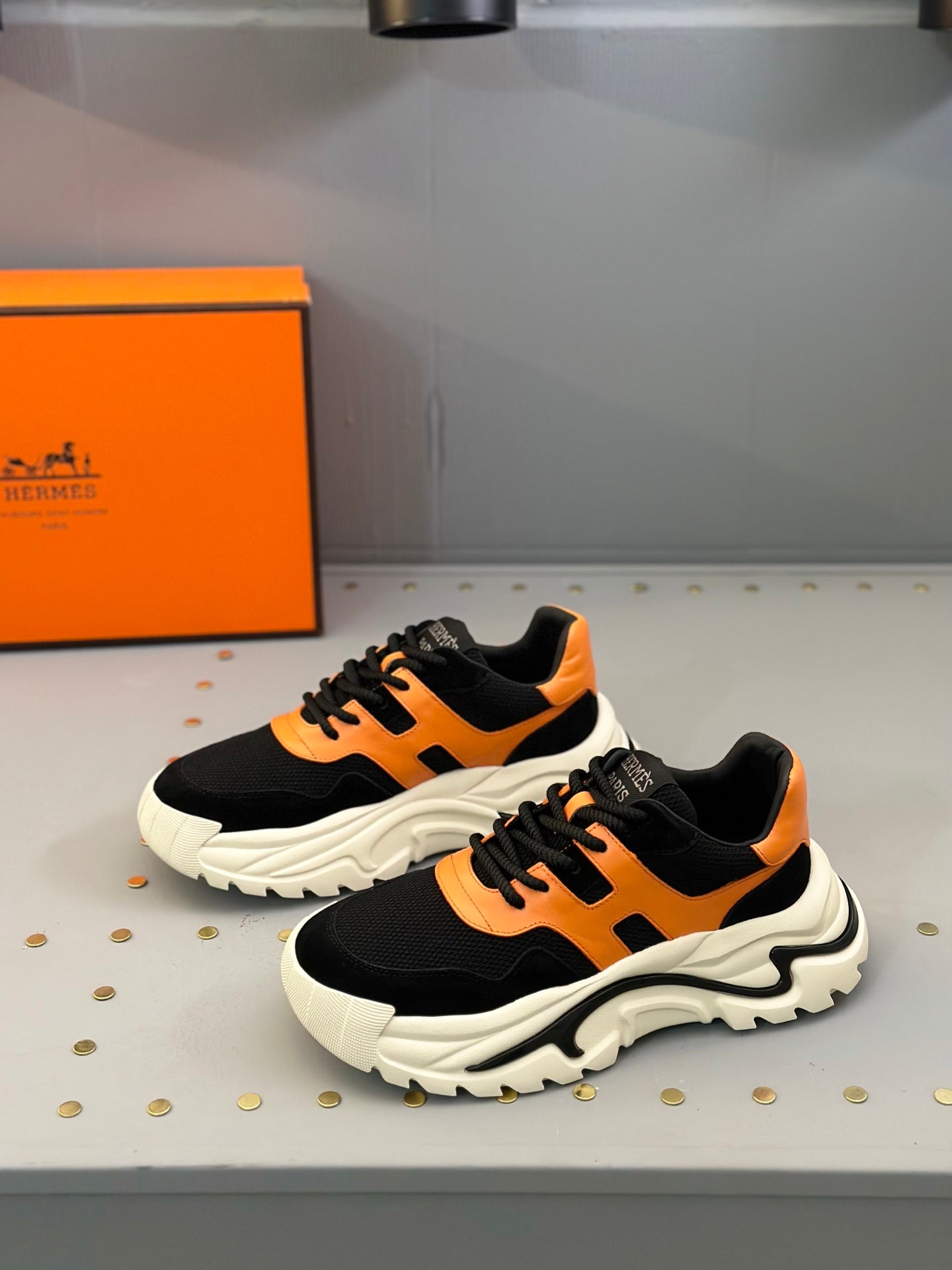 HM Men's Sneaker Black Orange Mesh Calfskin 541264