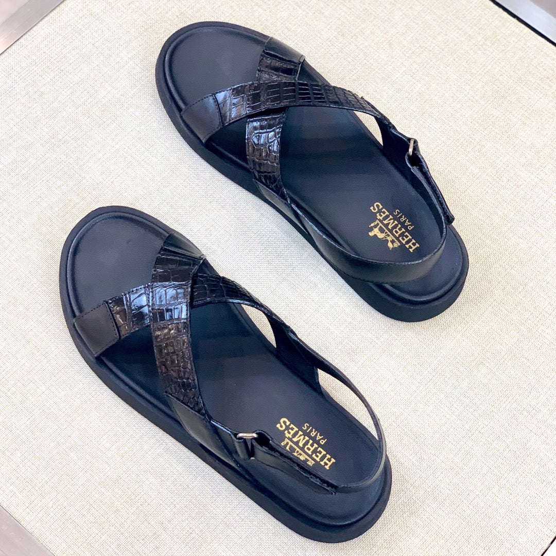 HM Men's "X" Sandals Black Rubber Sheepskin 561670