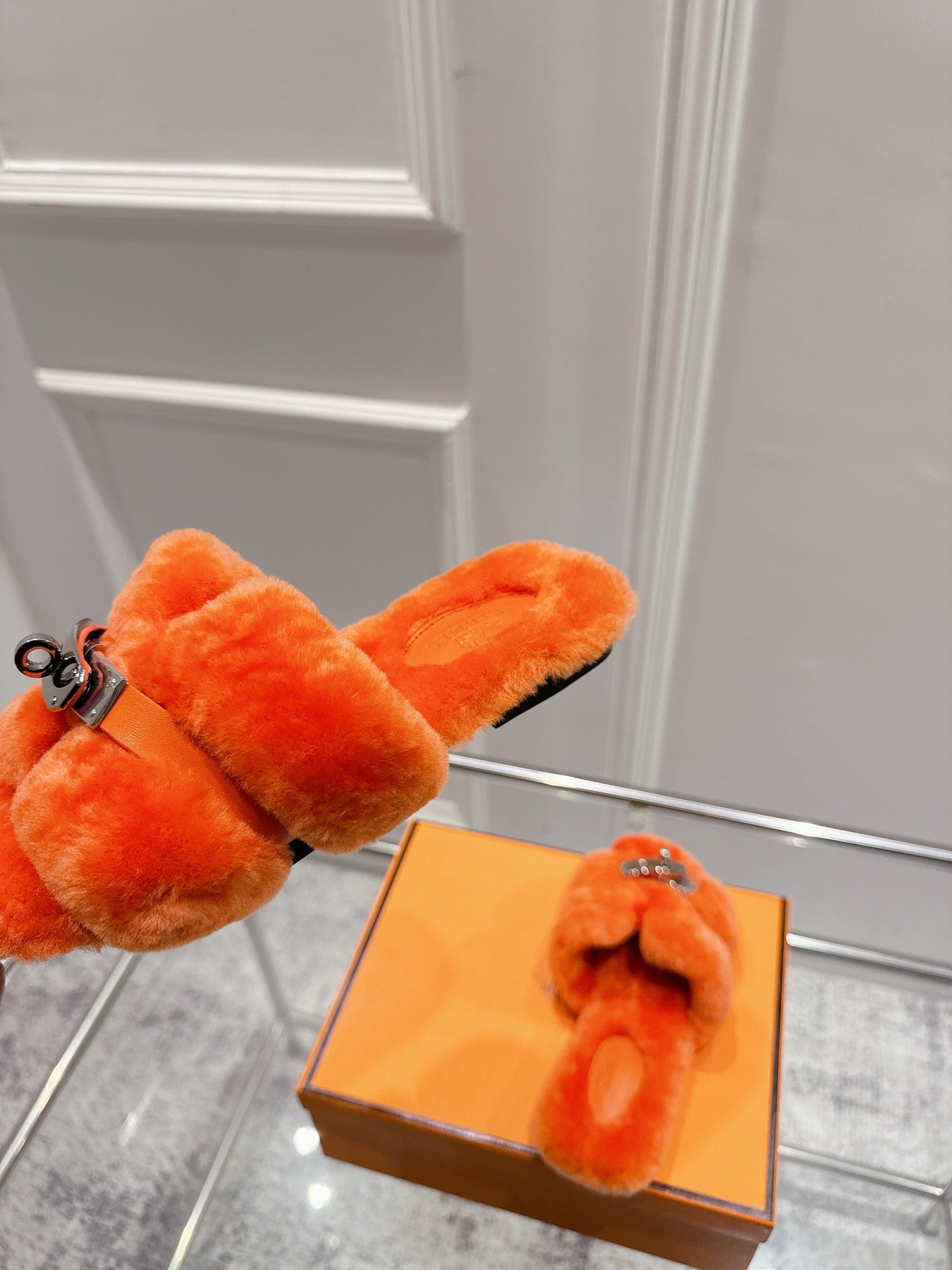 HM Oran slippers sliver buckle orange wool