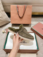 LP Charms Walk Babouche Loafer Army Green Suede With Rabbit Fur Lining 206233