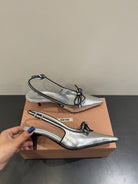 Miu slingback pump metallic sliver leather