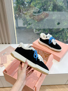 Miumiu 25 Platform Sneakers Black Blue Suede Wool 549099