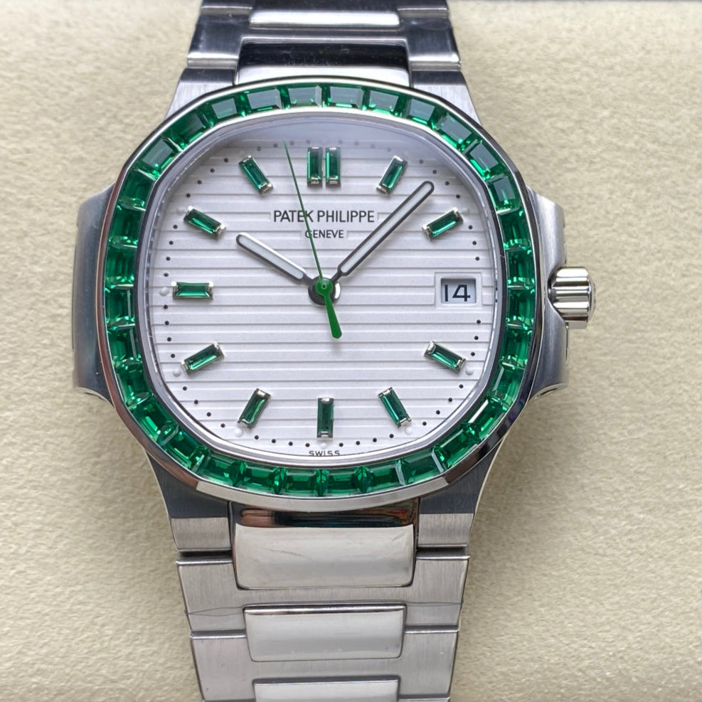 PATEK Nautilus 35.2mm Silver Green Diamond