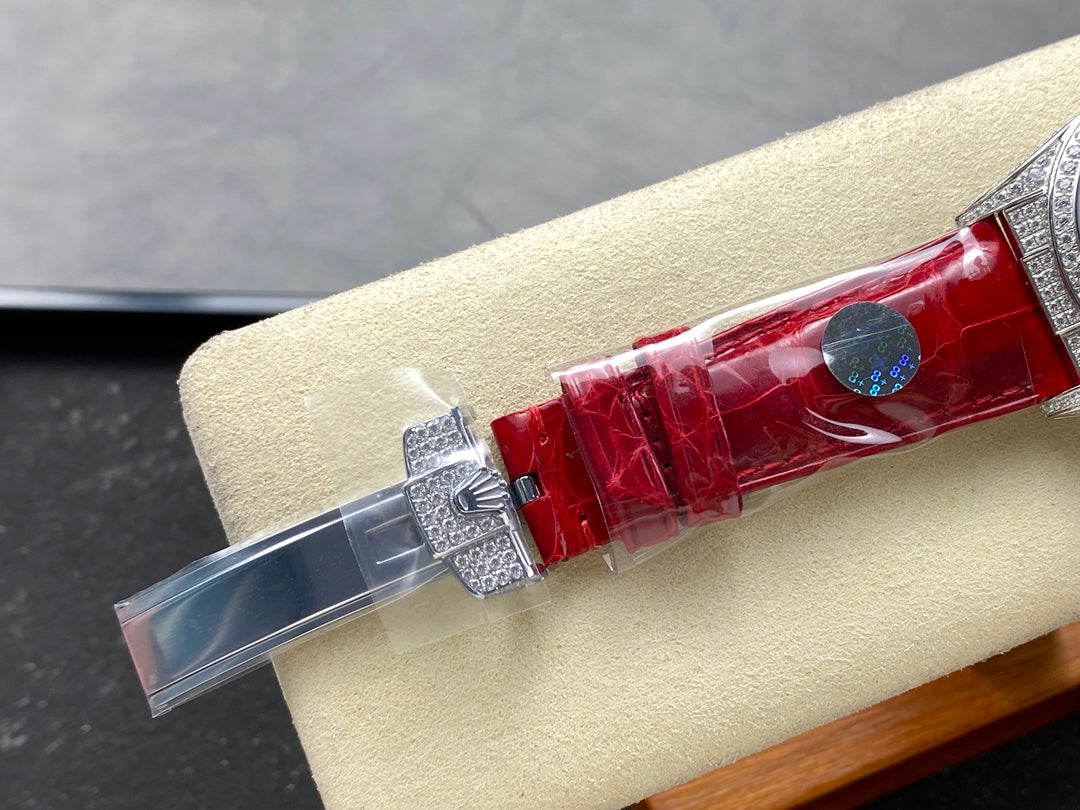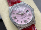 ROLEX Day-Date 36mm Diamond Red Leather Pink Dial