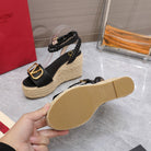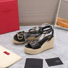 VT Wedge Platform Sandals Black Cowhide Espadrilles 363030