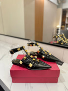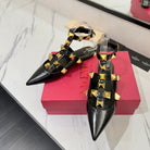 VT Rockstud Sandals Flat Black Gold Cowhide