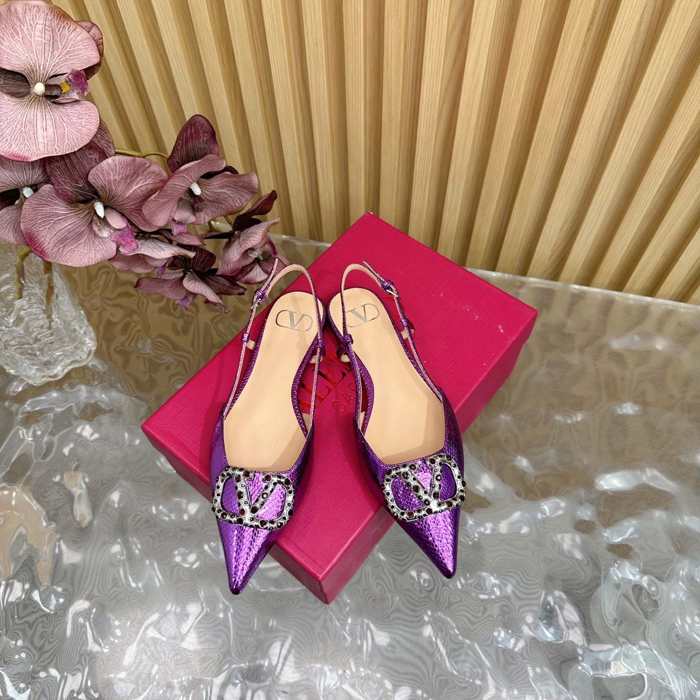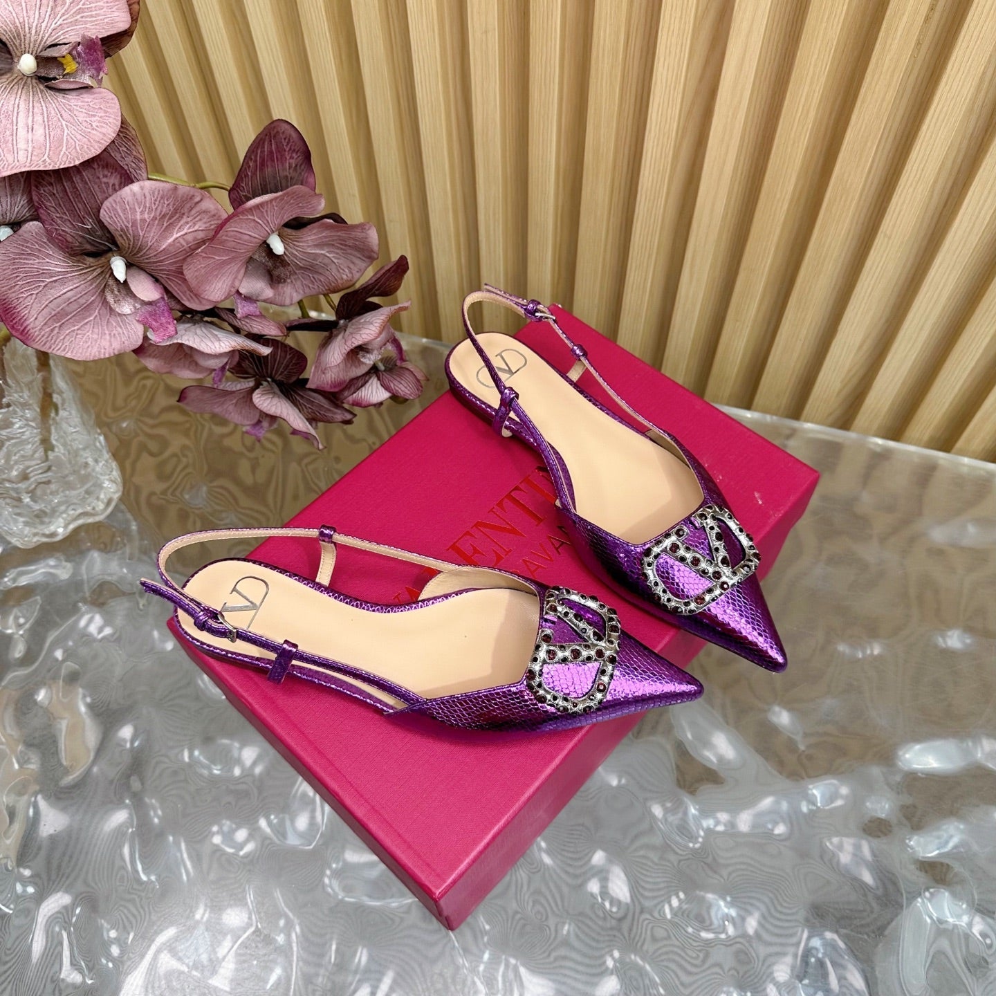 VT Slingback Flat Purple Snake-grain Leather