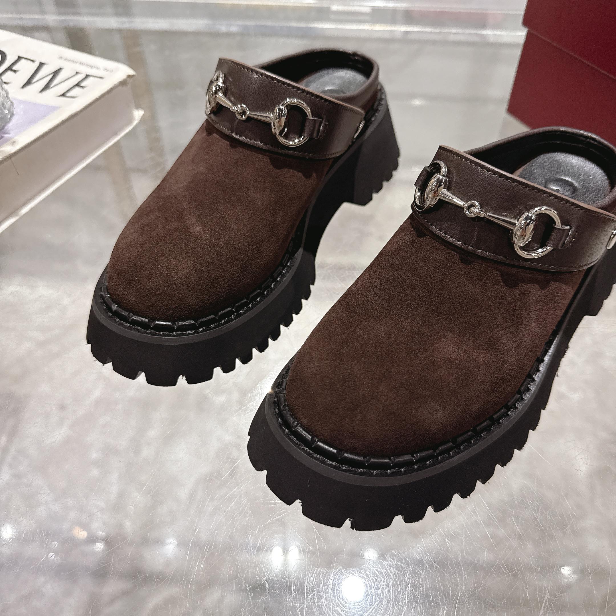 GG 2025 Horsebit Dark Brown mix Black Suede Sheepskin 416543