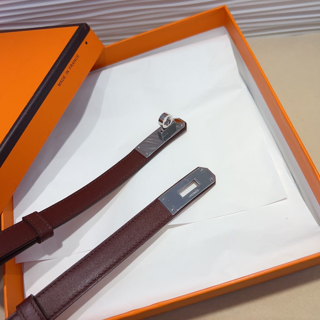 hm kelly belt 18mm burgundy calfskin silver buckle