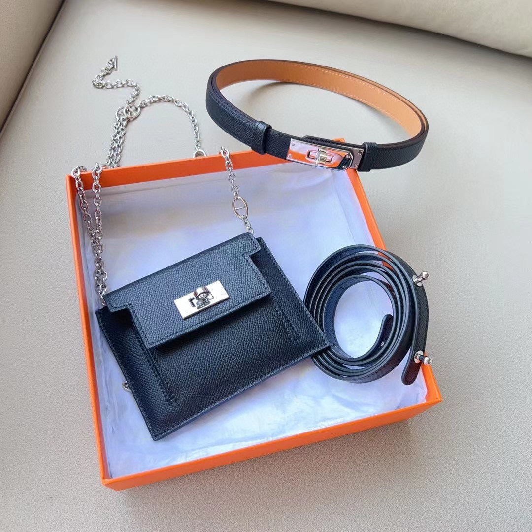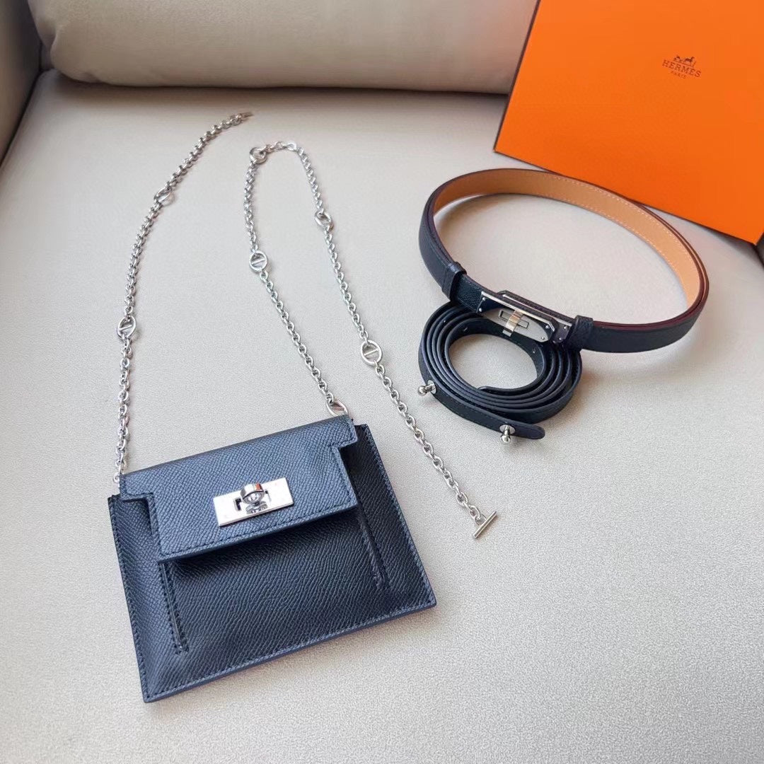 hm kelly belt 18mm with kelly pocket black epsom silver hardware