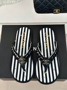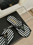 CC 25 Thong Sandal Braided Striped Black White