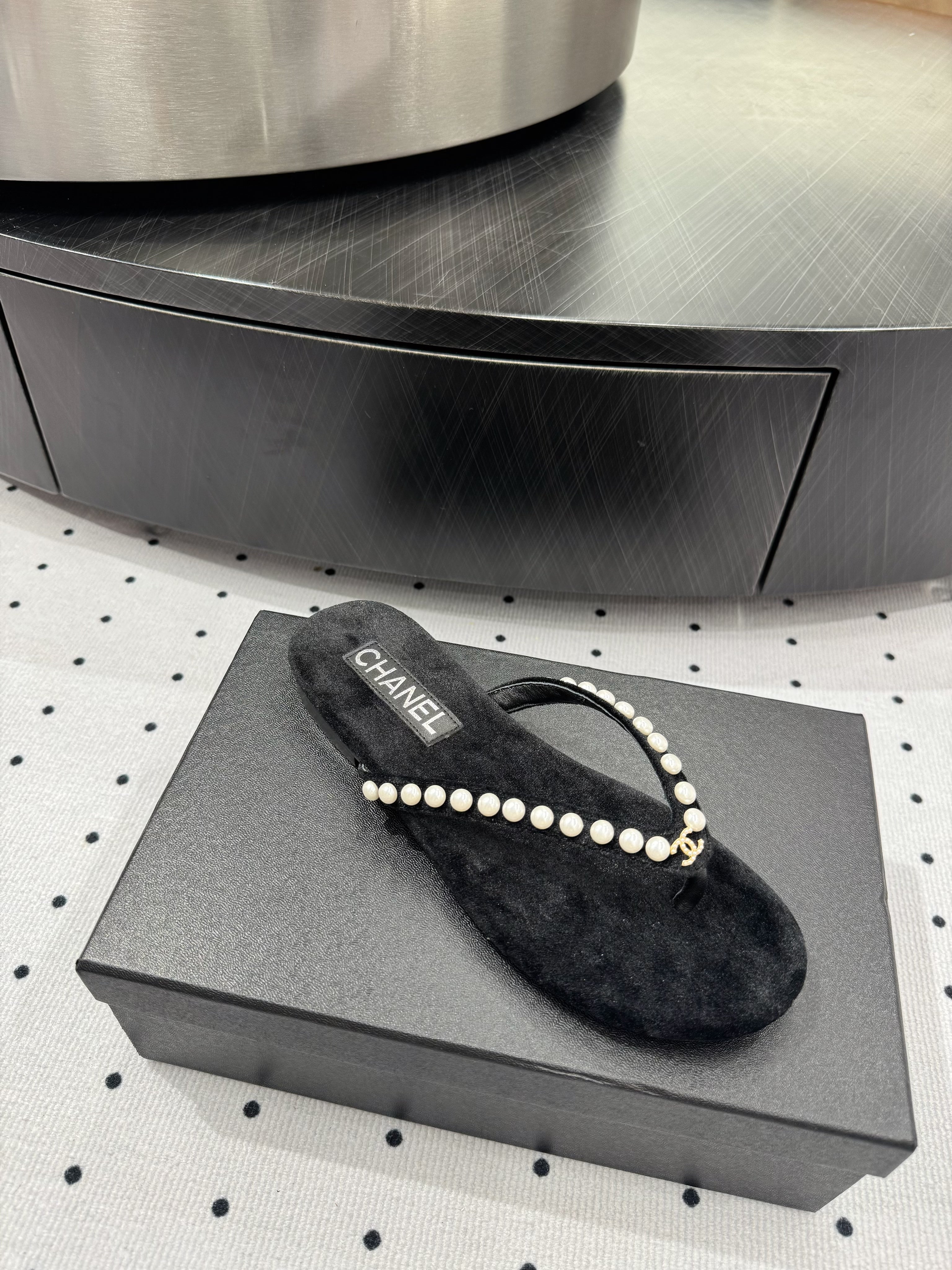 CC Thong Slippers Black Velet Pearl