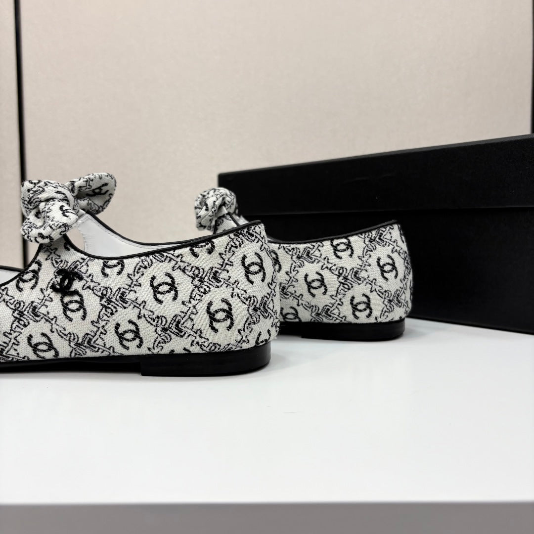 CC 25P Ballet Flat White Tweed Black Grosgrain