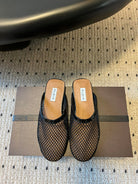 Alaia 25 Fishnet Flat Mules Black Lampskin 303685