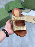 GG Men's 25 Slide Beige Brown Sedge Cowhide 734883