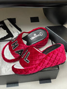 CC 25 Platform Slippers Red Velvet Sheepskin 334238