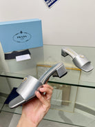 PRA EMBROIDERED SLIDES 40 SILVER CALFSKIN