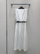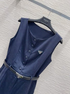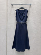 Prada 2025 Sleeveless Dress with Belt Navy Blue and White Linen